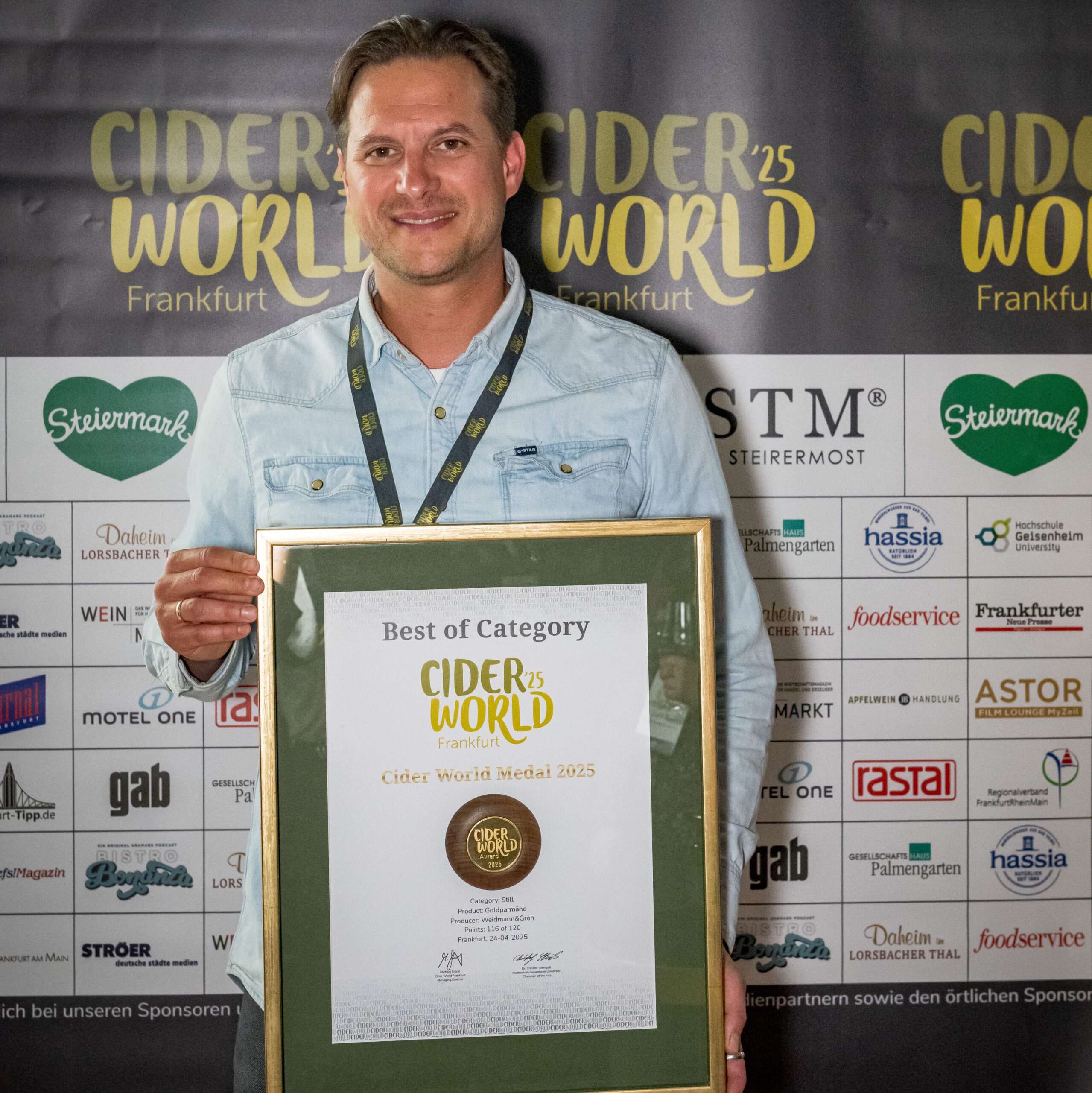 Die punktbesten Produkte mit mindestens Goldstatus jeder Katagorie der Cider World Awards werden mit einer „Cider World Medal“ ausgezeichtet.